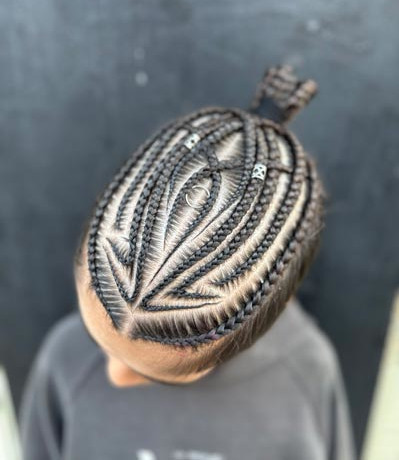 Στο κεντρικό τμήμα επιτρέπεται ελεύθερος σχεδιασμός πλεξούδων ή οποιοδήποτε σχήμα/σχέδιο επιθυμεί ο διαγωνιζόμενος.